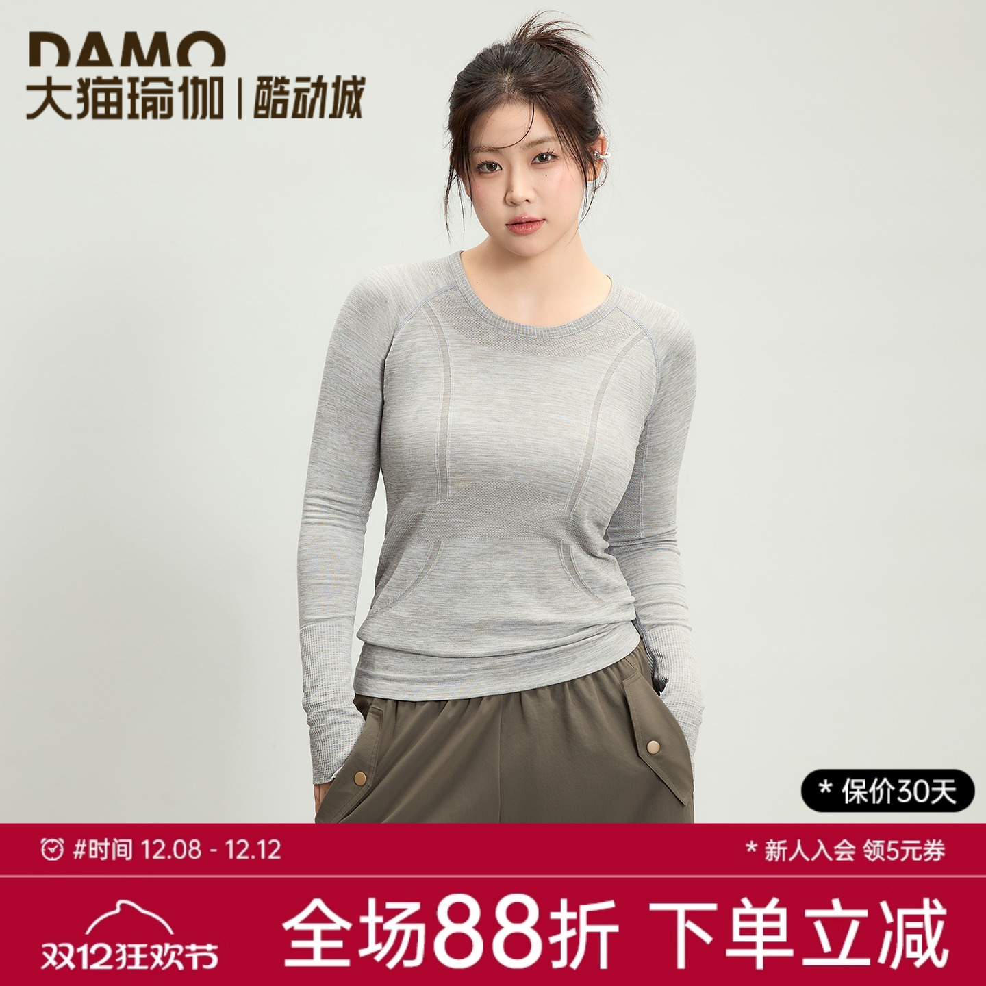 大码运动上衣女秋冬新款无缝一体织瑜伽服长袖胖mm跑步速干健身服