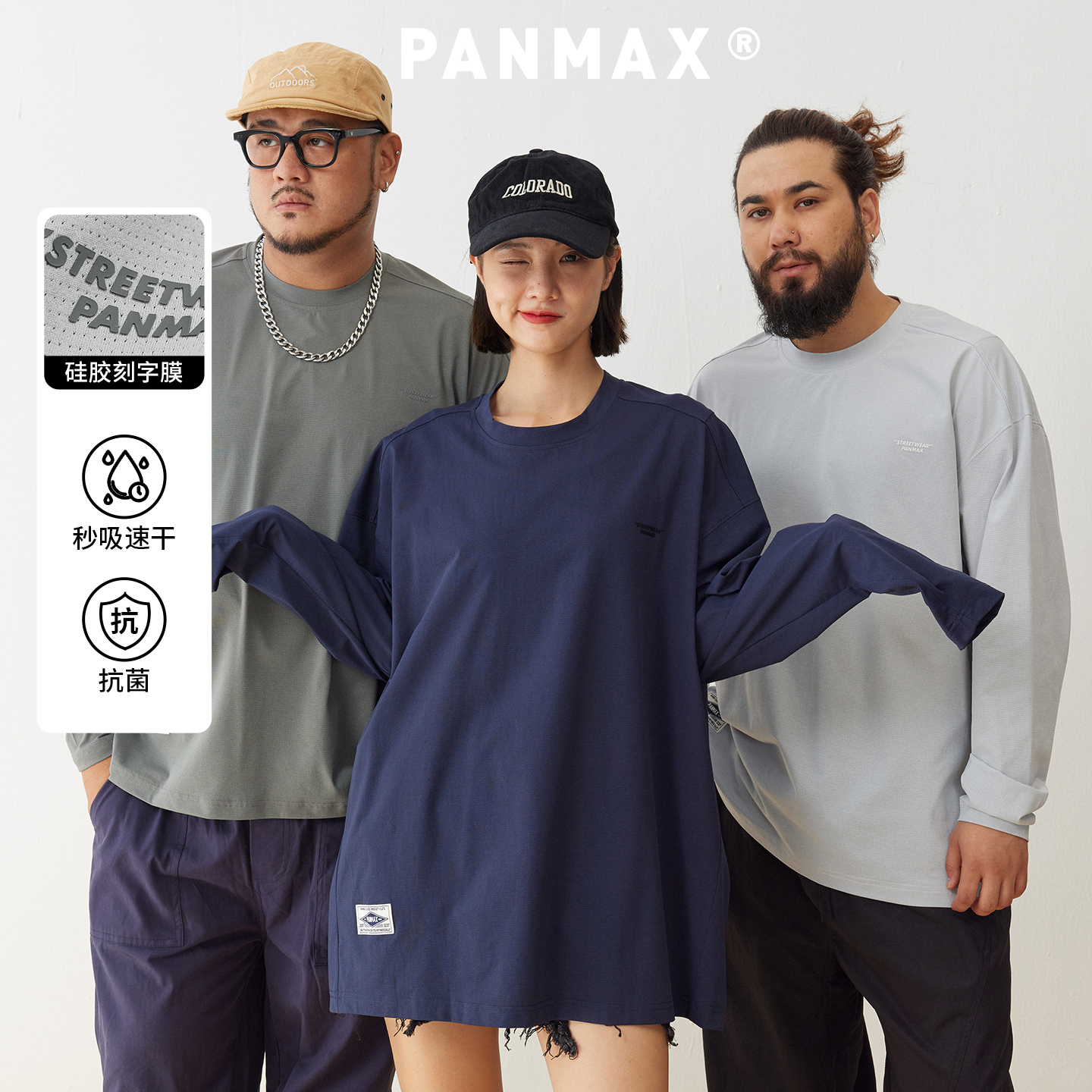 PANMAX潮牌大码男装重磅运动透气吸湿速干抗菌圆领长袖T恤上衣男