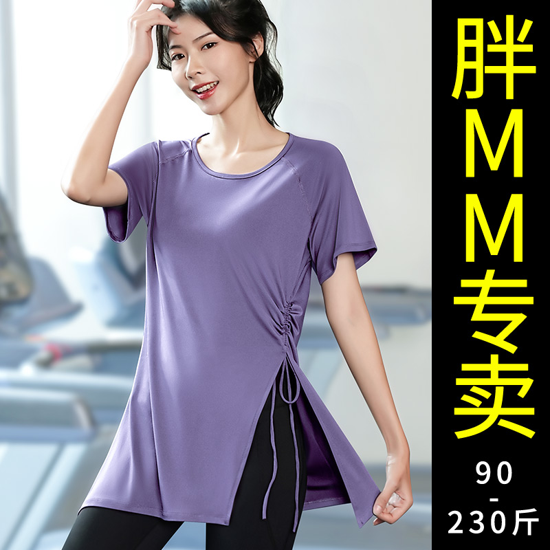 大码速干衣女宽松跑步运动瑜伽上衣健身服普拉提训练t恤胖mm200斤