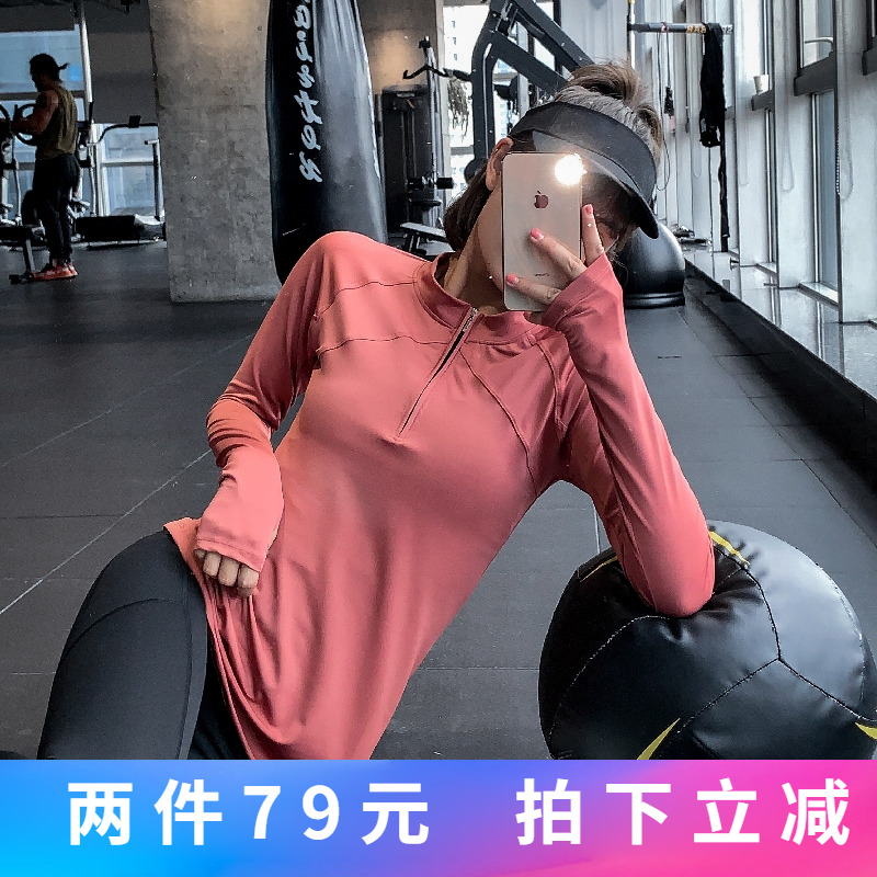 胖MM大码运动上衣女秋冬显瘦瑜伽服长袖跑步普拉提训练速干健身服