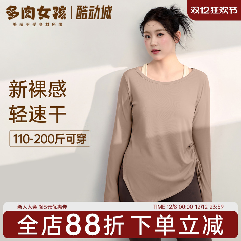 胖梨大码瑜伽服女2025新款裸感修腰显瘦运动上衣胖mm速干健身长袖