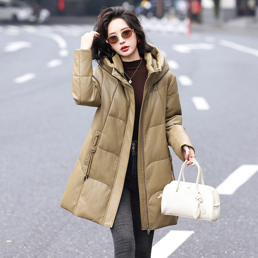 - 休闲羽绒服女中长款