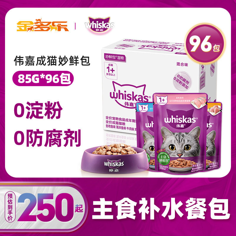 伟嘉妙鲜包96包猫咪猫零食成幼猫鲜封湿粮软包整箱官方授权旗舰店