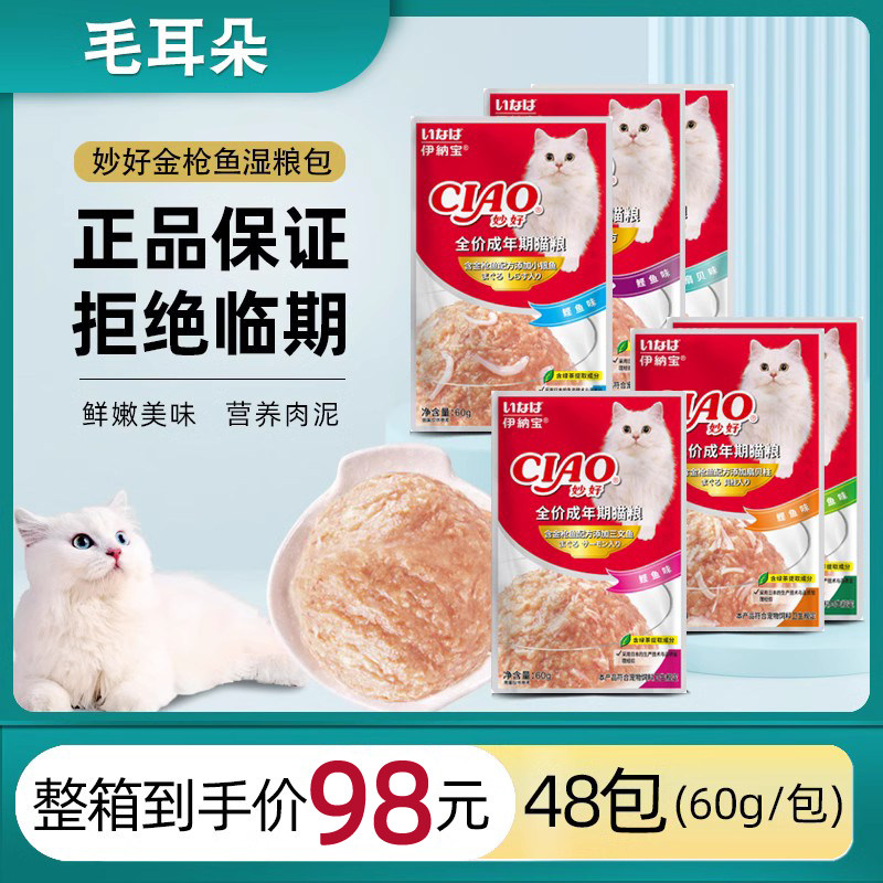 猫零食伊纳宝妙好猫妙鲜湿粮包48包金枪鱼成猫幼猫罐头猫咪湿粮