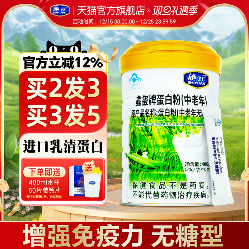 施元蛋白质粉中老年无蔗糖型高蛋白营养老人高钙营养品增强免疫力