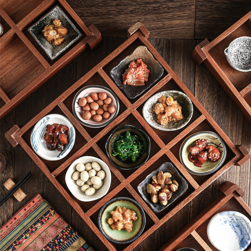 民宿日式和风餐具九宫格餐具小吃碟配木盒餐具六宫格多格木盒餐盘