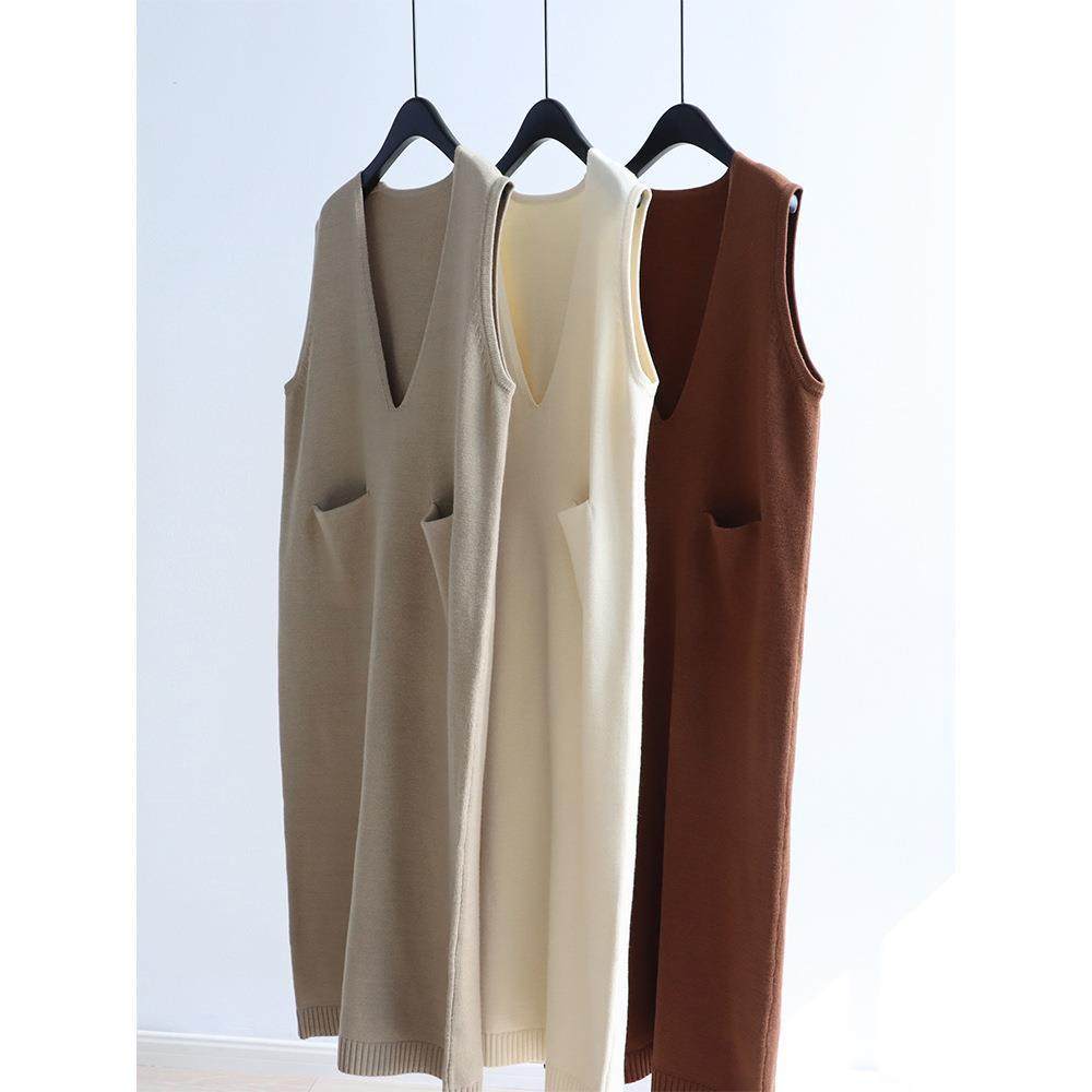 吴童童U领无袖背心毛衣裙女秋冬韩系慵懒宽松百搭针织A字长裙子