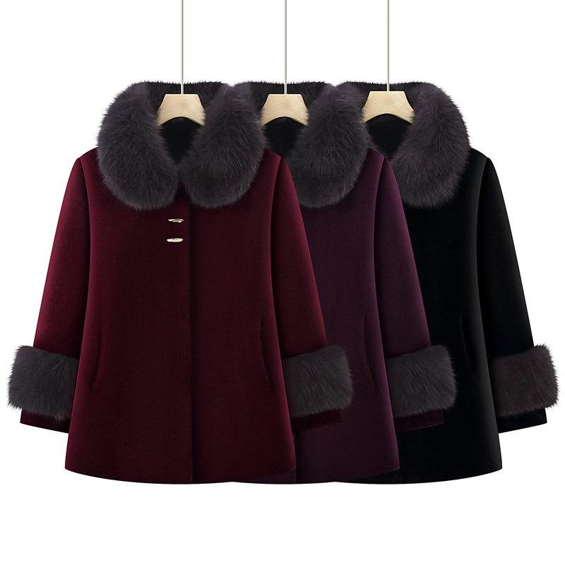 大衣妈妈装中长款仿狐狸毛领皮毛一体夹棉厚棉衣中老年皮草女外套