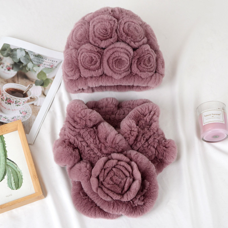 中老年妈妈帽女士冬季加厚保暖獭兔毛编织皮草老奶奶帽子围巾套装