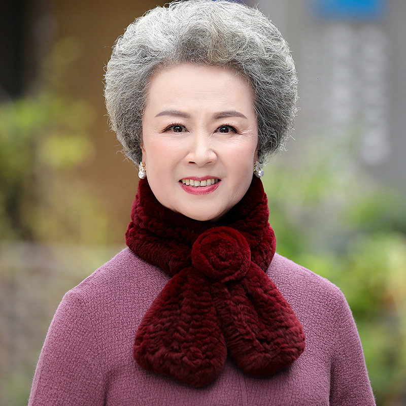 中老年皮草围巾女冬天优雅花朵妈妈户外保暖围巾奶奶獭兔毛围巾新
