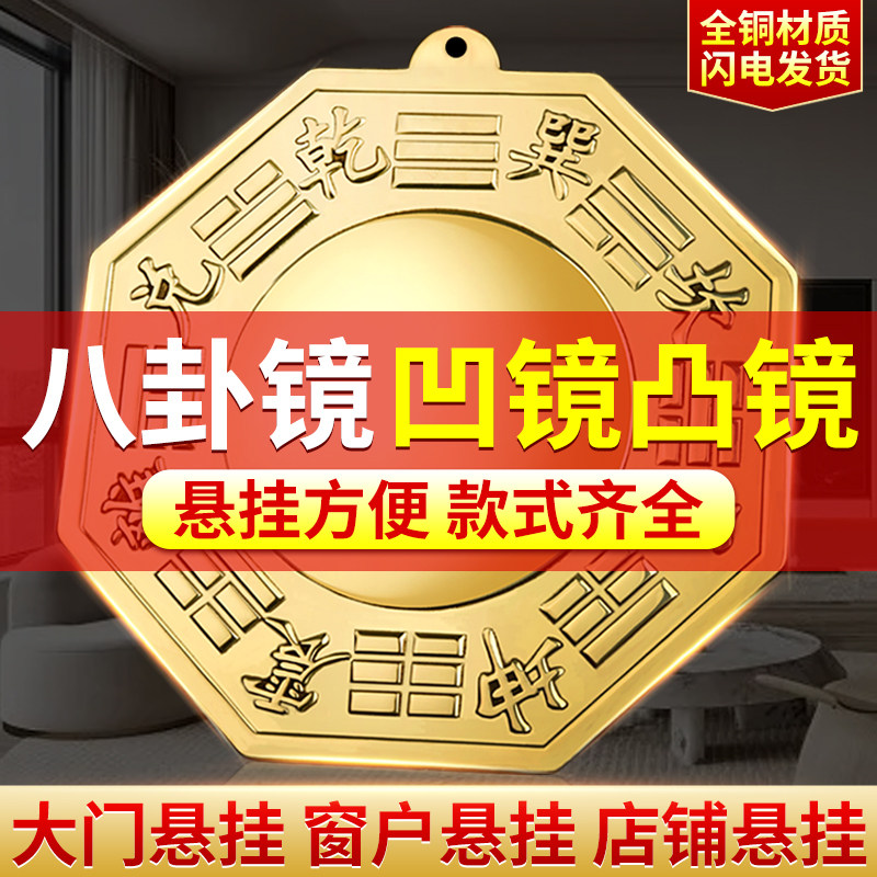 八卦镜凸镜家用大门口窗户纯铜九宫镜子凹镜门口摆件葫芦客厅墙角