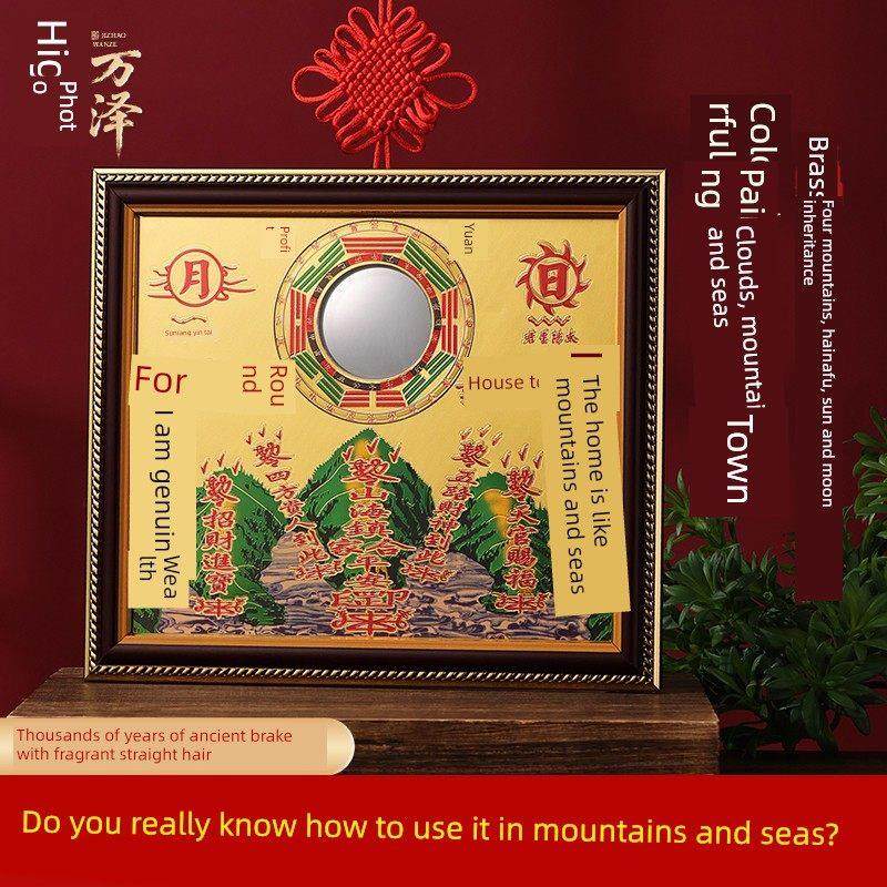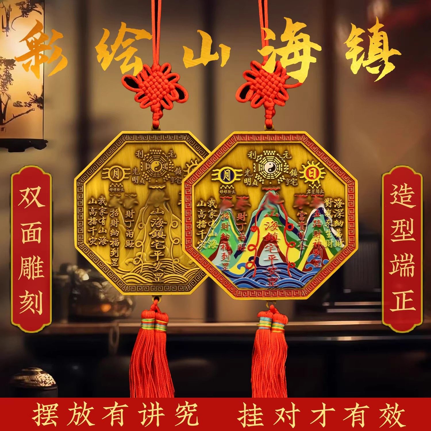 鼎风阁全铜山海镇挂件八卦凸镜室外三山五岳山海镇图客厅装饰摆件