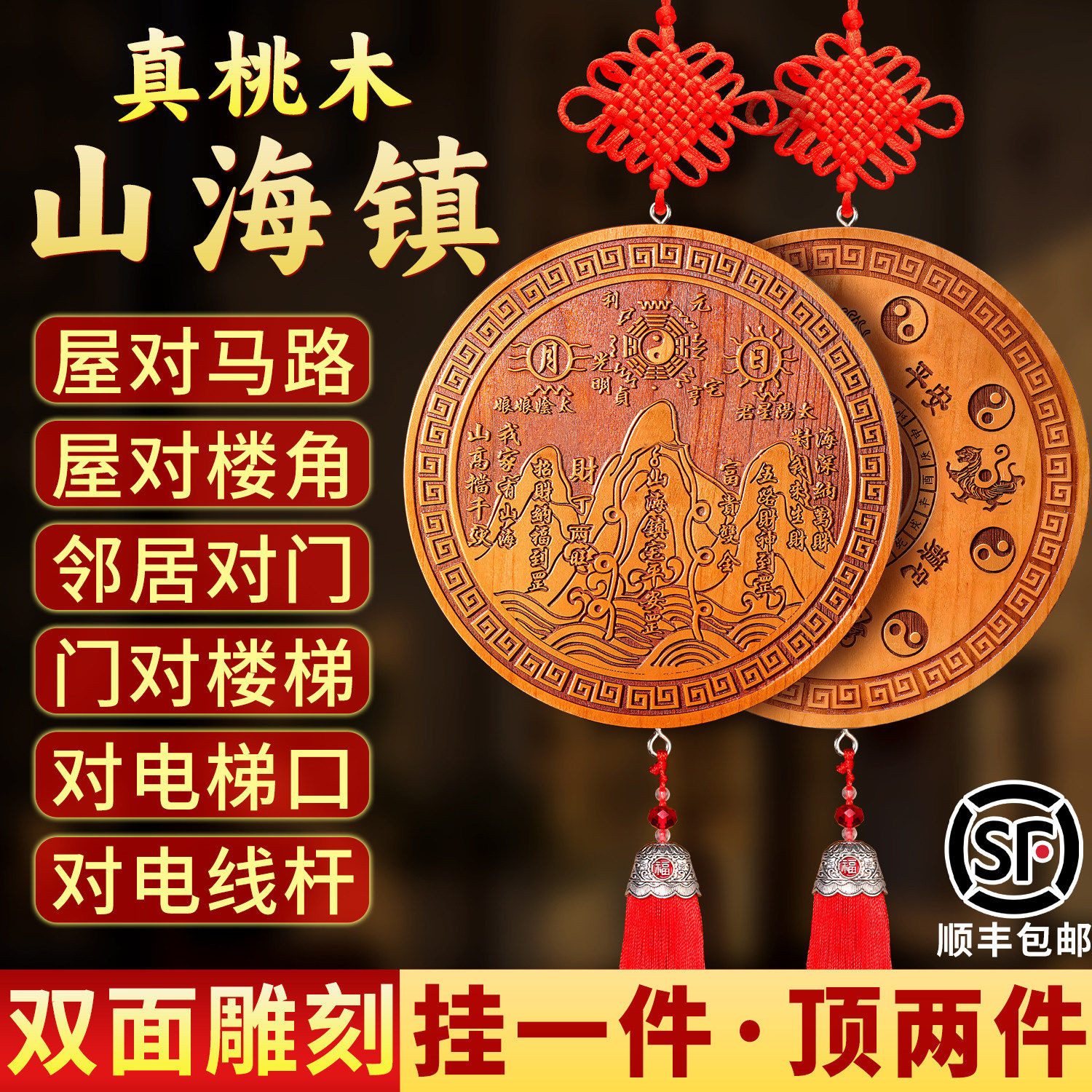 桃木山海镇挂件大门口室外室内摆件玄关山海镇八卦凸镜家居挂窗户