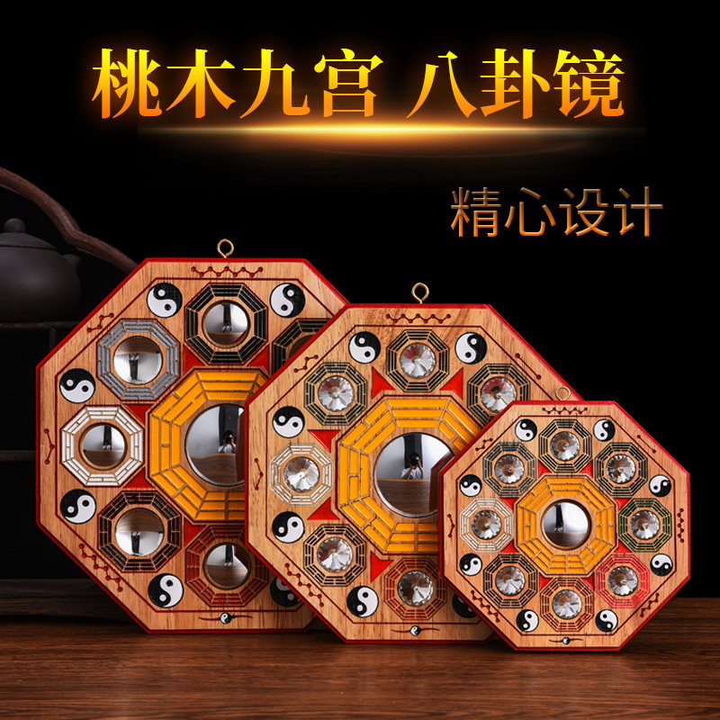 反光八挂镜挂门镜子八卦凸镜门口木质桃木大门窗户罗盘太极凸面镜