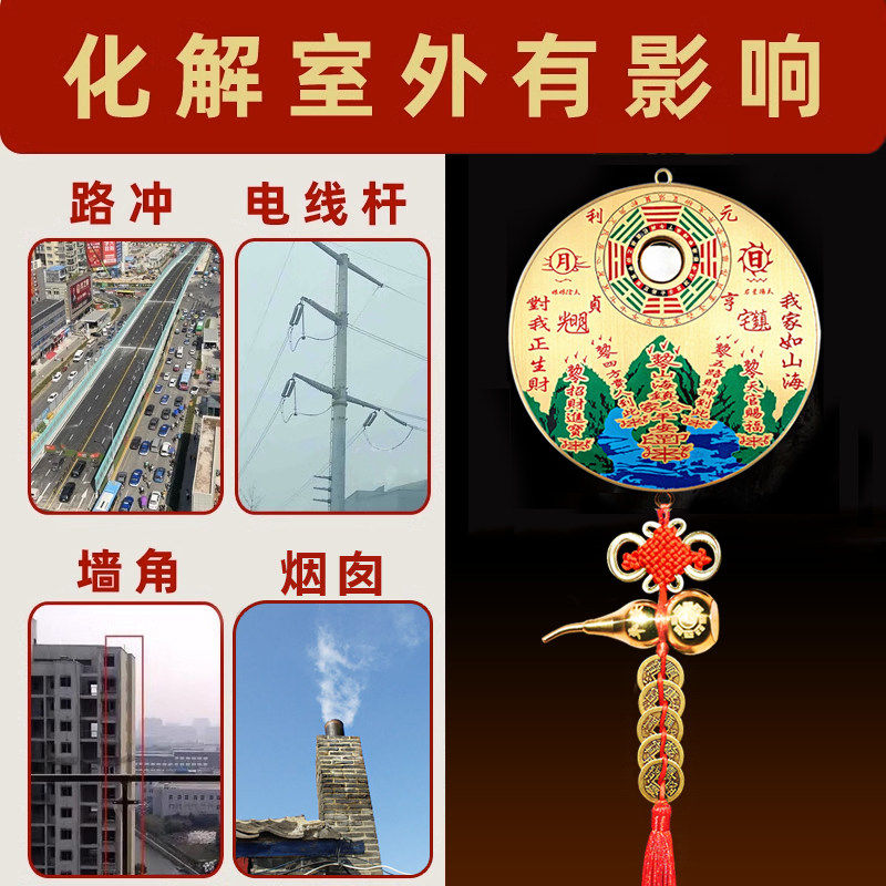 路冲挂件大门口窗户对电线杆墙角壁刀烟囱化解八卦凸镜纯铜山海镇