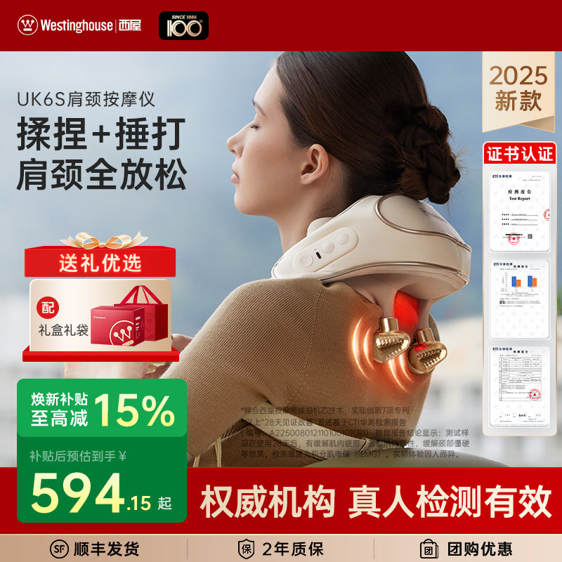 美国西屋UK6S揉捶肩颈按摩仪颈部按摩器颈椎腰部背部揉捏脖子礼物