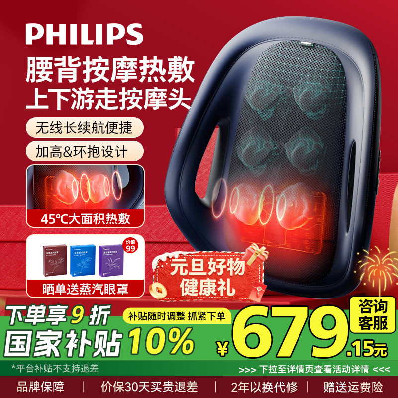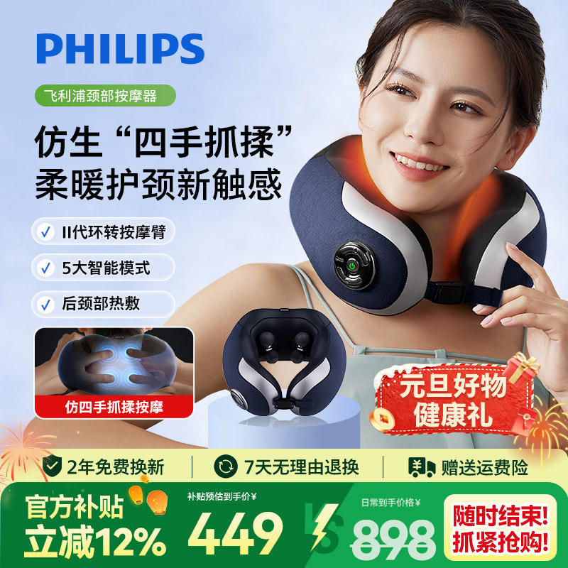 飞利浦U型枕肩颈按摩仪颈椎颈部按摩器护颈热敷神器旅行颈枕礼物