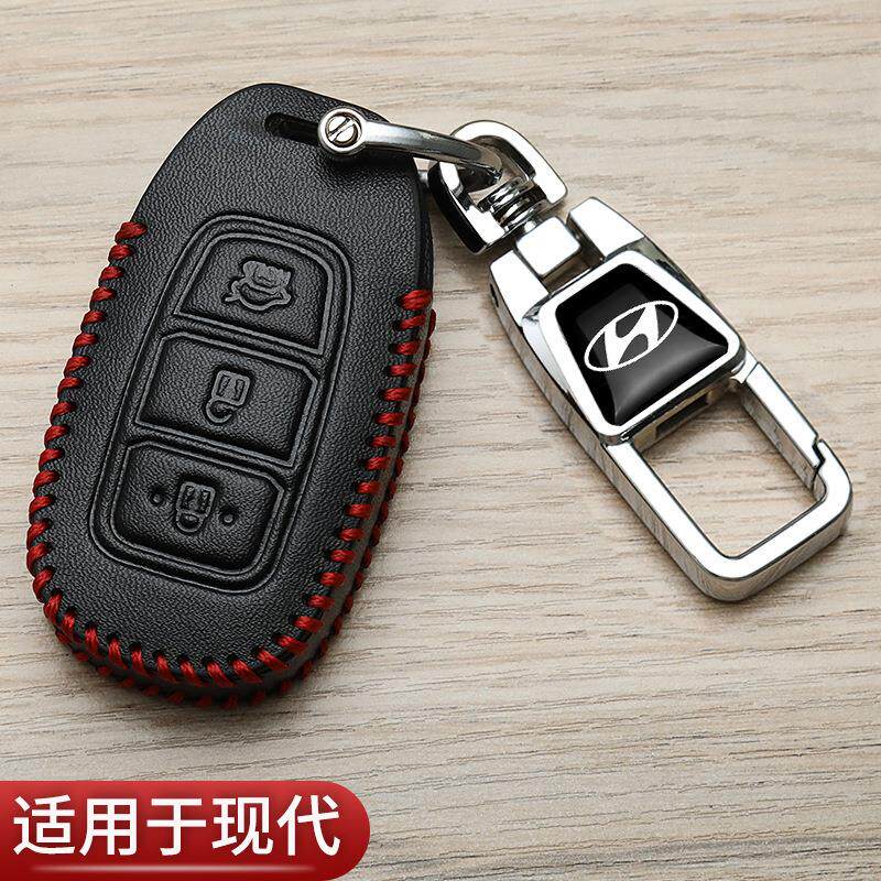 适用现代钥匙套领动朗动名图ix35瑞纳菲斯塔新胜达途胜真皮车包扣