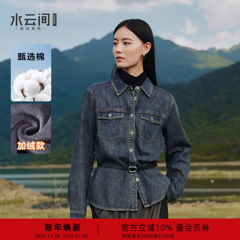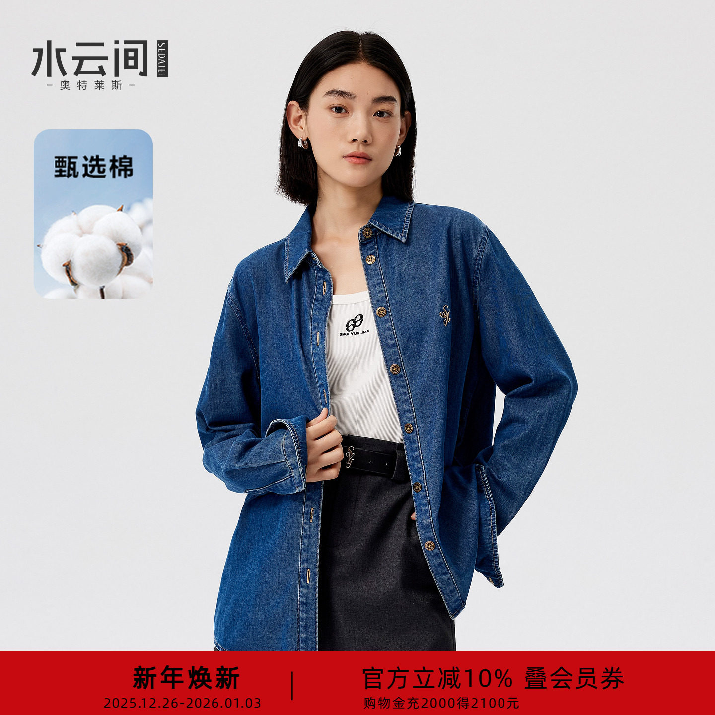 水云间经典水洗牛仔衬衫外套女复古做旧正肩长袖衬衣纯棉2026新款