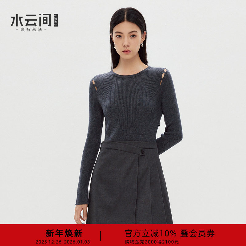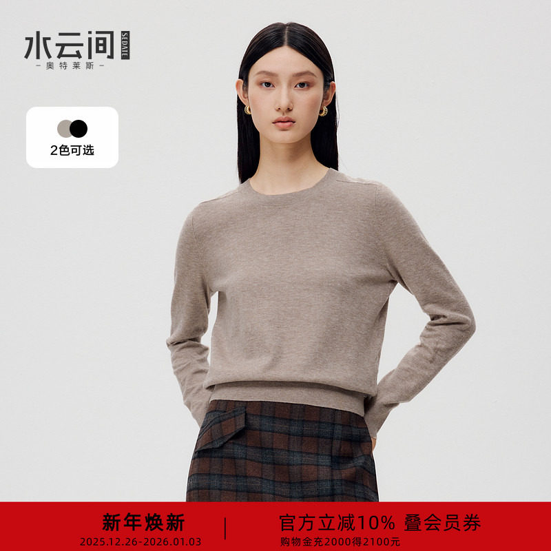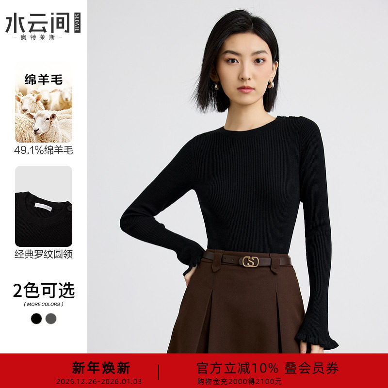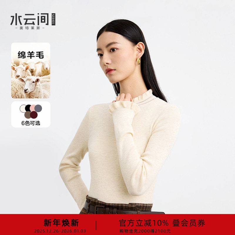 水云间女装 烟管领修身打底纯羊毛长袖针织衫上衣2025秋季新款