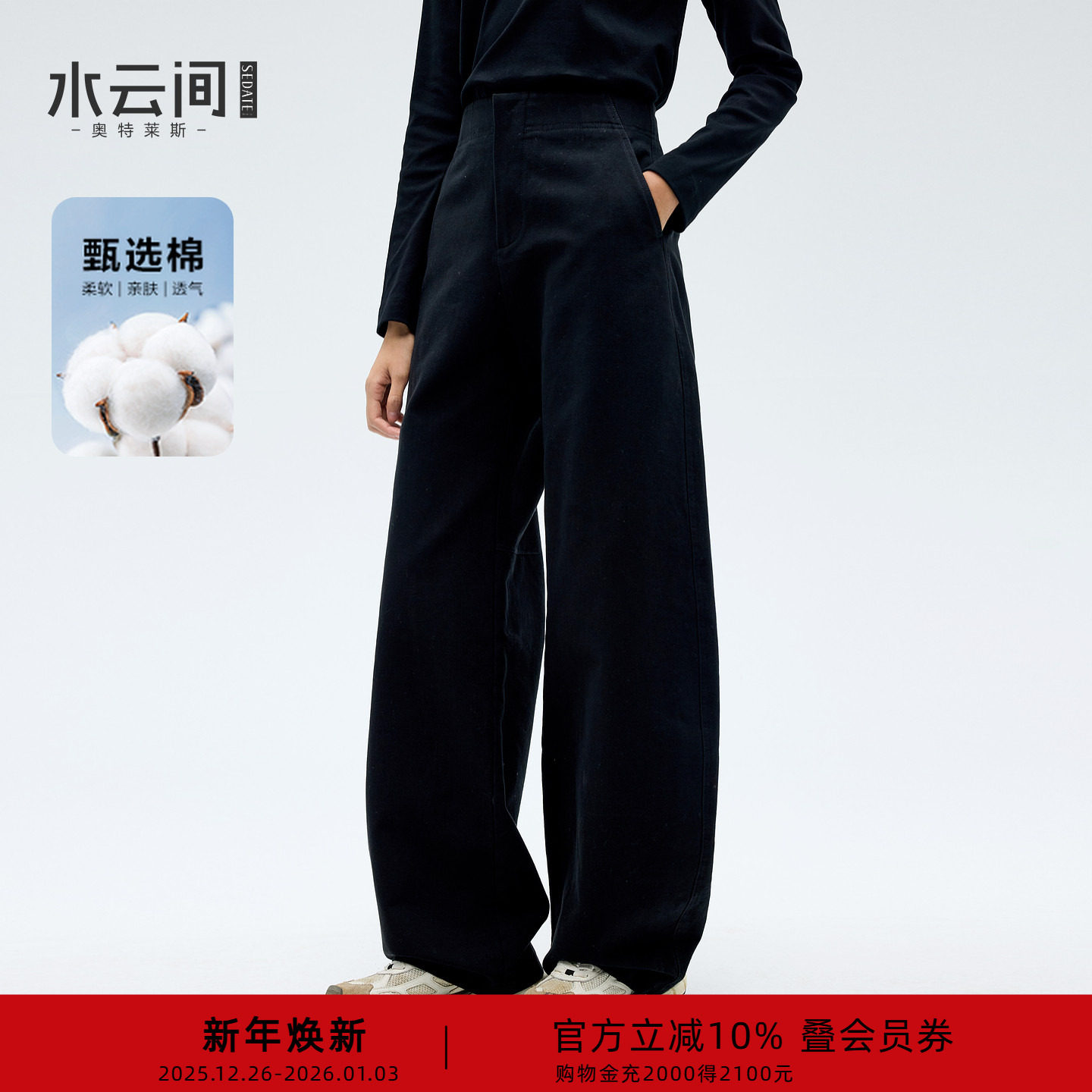 水云间黑色纯棉弯刀香蕉裤女休闲镰刀长裤子宽松松弛慵懒风2026春