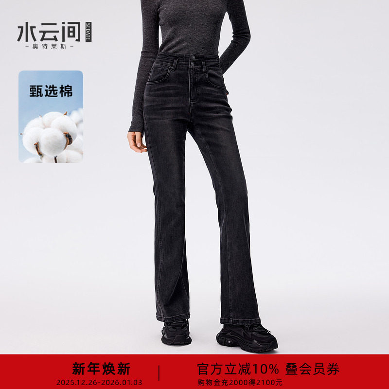 水云间微紧身喇叭裤女复古水泥灰高腰牛仔裤厚加绒保暖2025冬新款