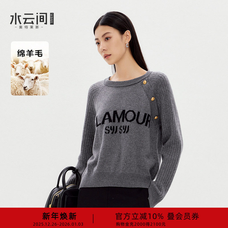 水云间灰色羊毛针织衫女格雷系套头毛衣宽松叠穿上衣2025秋冬新款
