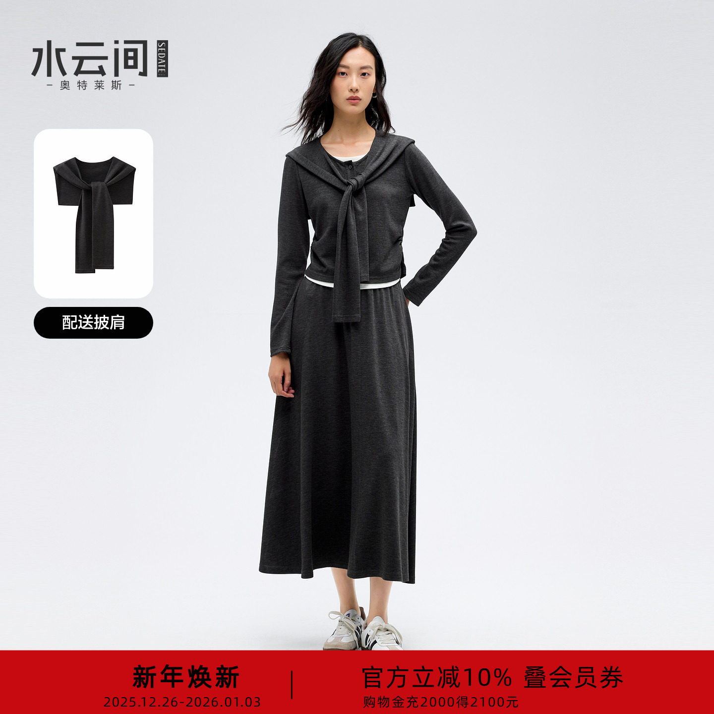 水云间深灰色毛针织衫半身裙套装海军领披肩上衣长裙两件套2026春