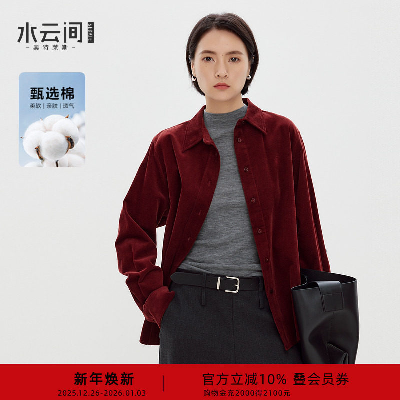 水云间复古红色灯芯绒衬衫外套女纯棉长袖衬衣宽松上衣2025秋冬款