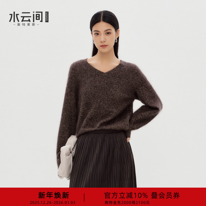 水云间v领马海毛针织衫女亮丝珠片毛衣厚秋冬季文艺复古穿搭2025