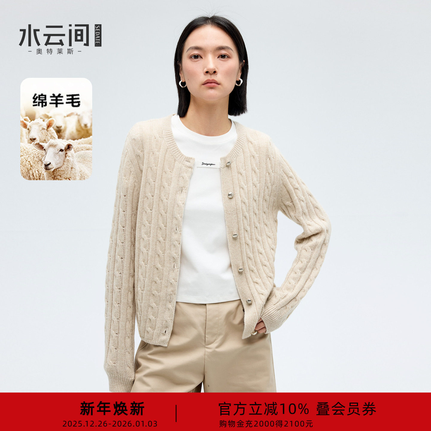 水云间杏色麻花羊毛针织开衫上衣女保暖毛衣兔毛羊绒混纺内搭2026