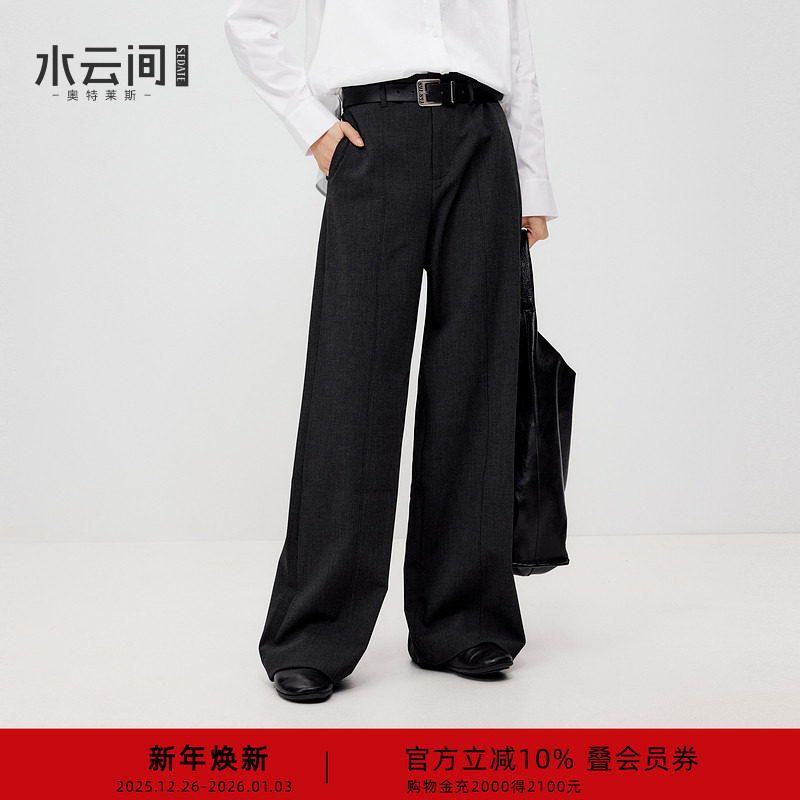 水云间灰色极简西装裤女休闲垂感直筒阔腿长裤子中性风2025秋新款