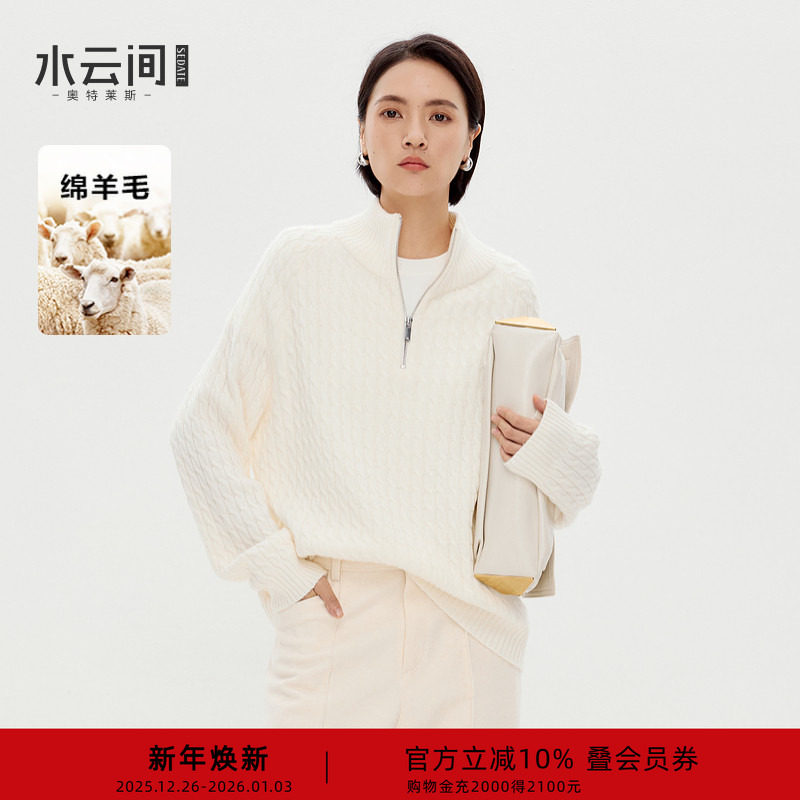 水云间白色麻花高领毛衣女老钱风羊毛针织衫上衣叠穿秋冬实穿主义