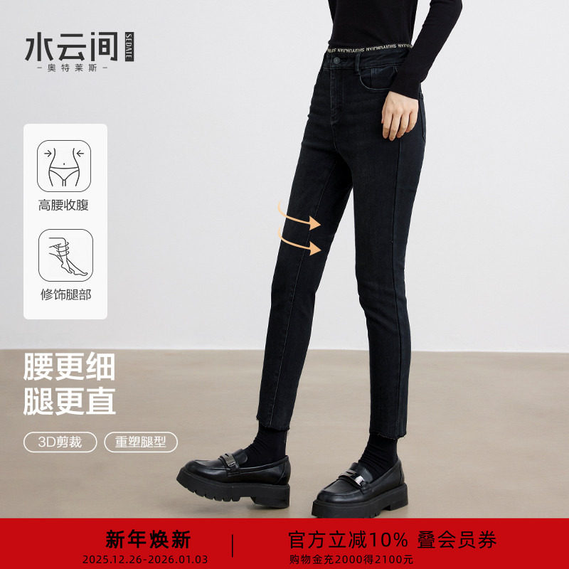 水云间黑色高腰加绒牛仔裤女修身显瘦保暖长裤子百搭2025秋冬新款