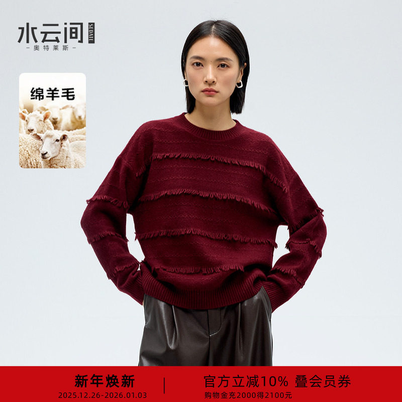 水云间安可拉红磨毛边毛衣女纯羊毛针织衫复古风套头长袖圣诞跨年
