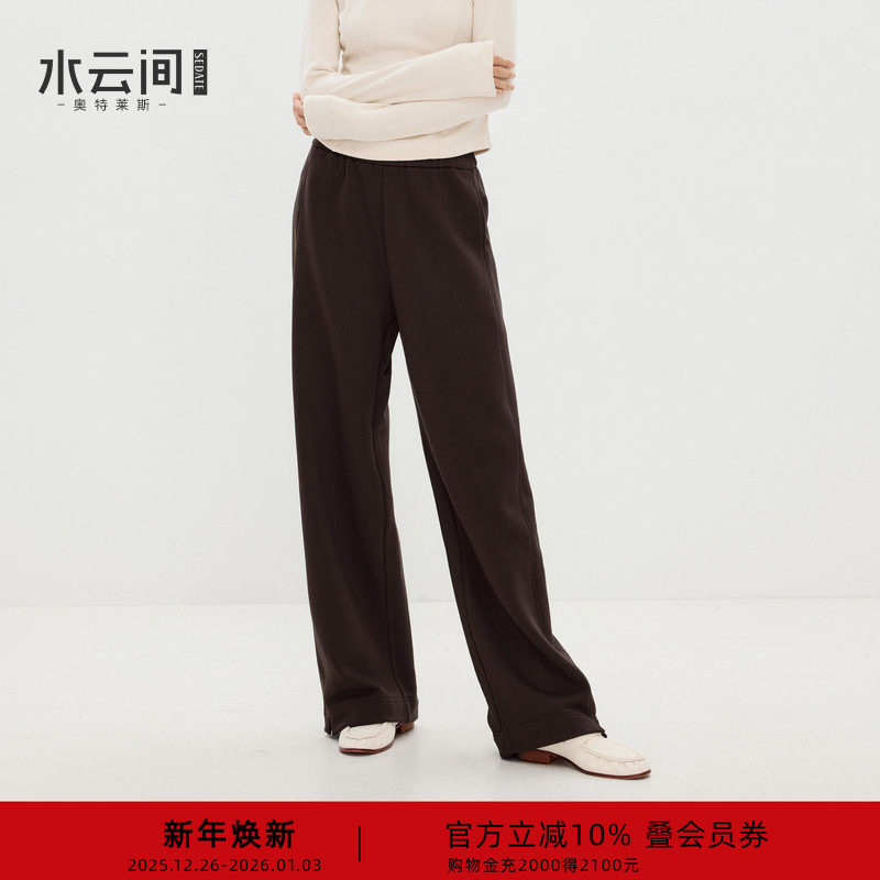 水云间复古咖色加绒弯刀长裤子女直筒香蕉卫裤摩卡慕斯风2025冬款