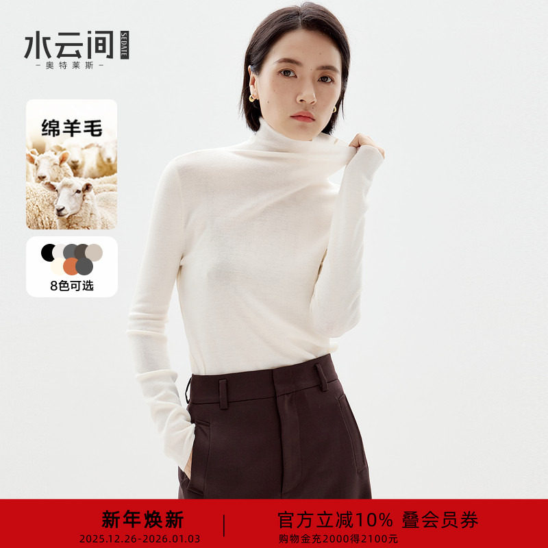 水云间羊毛针织衫上衣女高领毛衣内搭长袖打底衫保暖叠穿2025秋冬