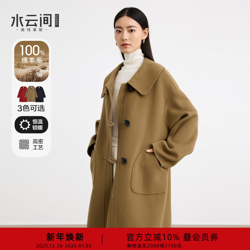 水云间纯羊毛大衣双面毛呢外套女学院风中长款柔韧大女主2025冬款