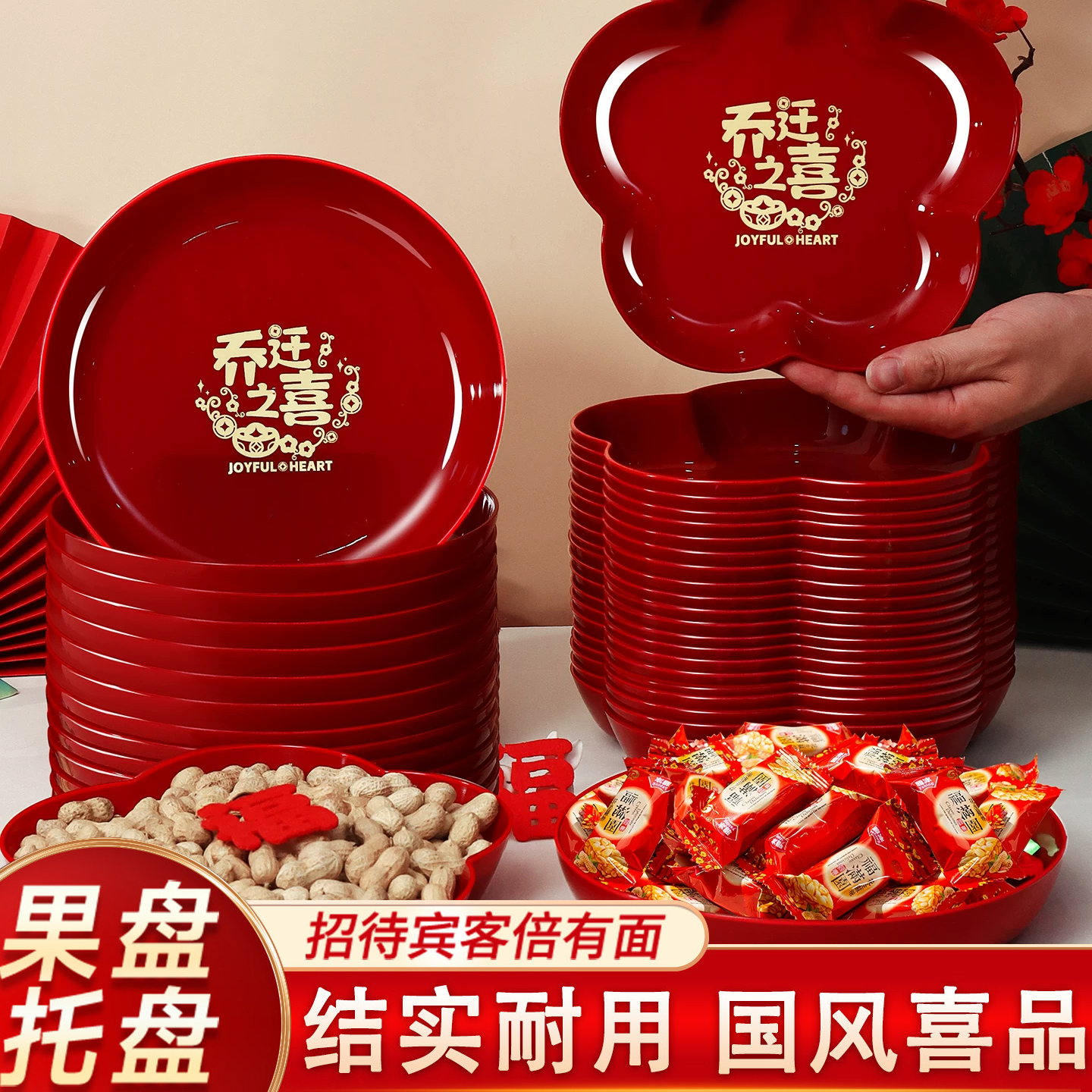 乔迁之喜果盘红色喜庆客厅茶几收纳盒新年装饰中国风摆件节日通用
