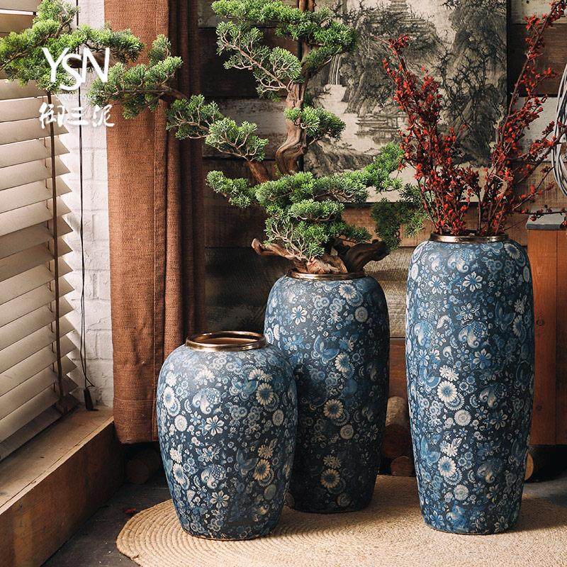 御三泥复古青花落地花瓶仿古陶瓷花器中国风摆件戏剧道具花瓶花器