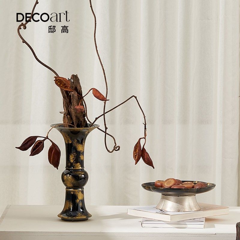 邸高DECO中国风摆件宋代宋式花觚花瓶沙发边角几中式木质托盘组合