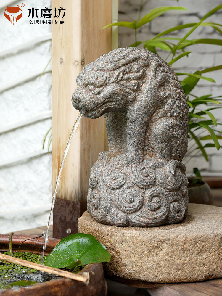 中式户外庭院鱼缸水循环流水器花园水池造景装饰吸水兽中国风摆件