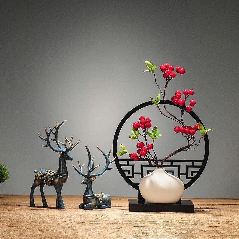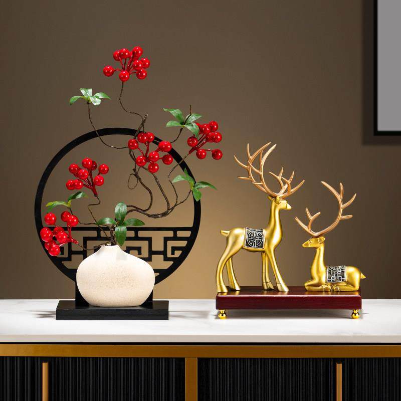 新中式酒柜中国风摆件隔断柜复古玄关家居客厅创意福鹿高档装饰品