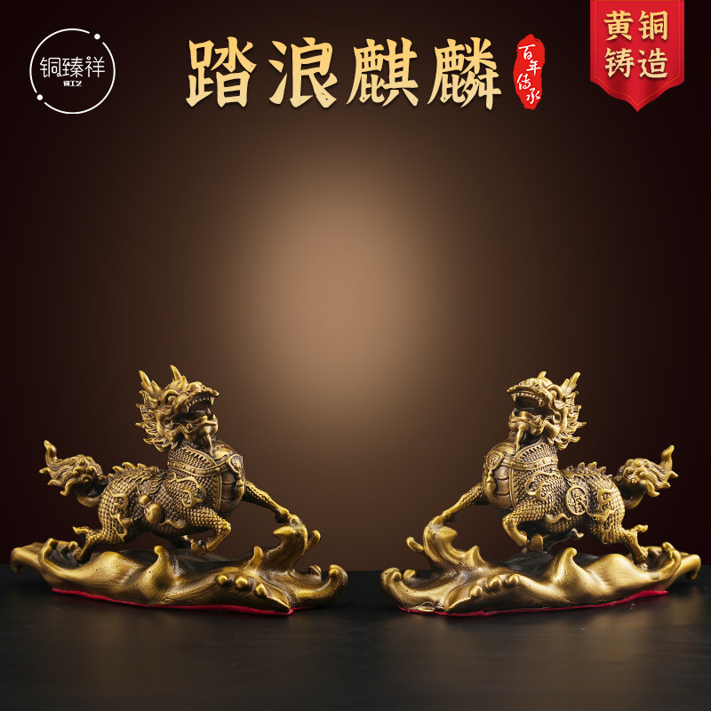 铜祥瑞麒麟一对客厅旺宅摆件饰品装饰工艺品摆件高级感中国风摆件