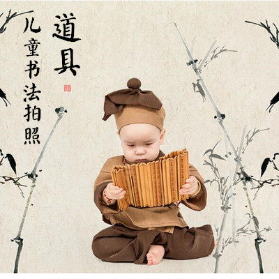 影楼摄影道具儿童古装拍照竹简 书法布 中国风摆件三字经书简笔架