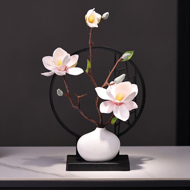 邸高中国风摆件装饰室内空间装修设计中式茶几意境花瓶高级感插花