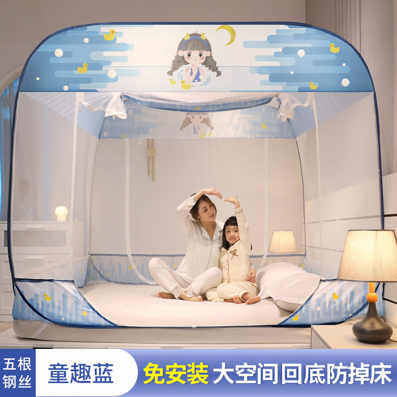 2024新款免安装家用卧室蒙古包蚊帐三开门可折叠防摔儿童无需支架