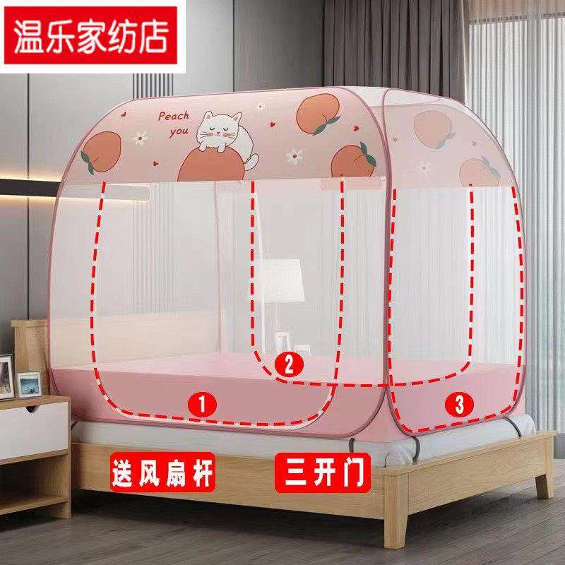 。免安装蒙古包蚊帐三开门床罩防蚊帐2023新款家用卧室加密加厚防