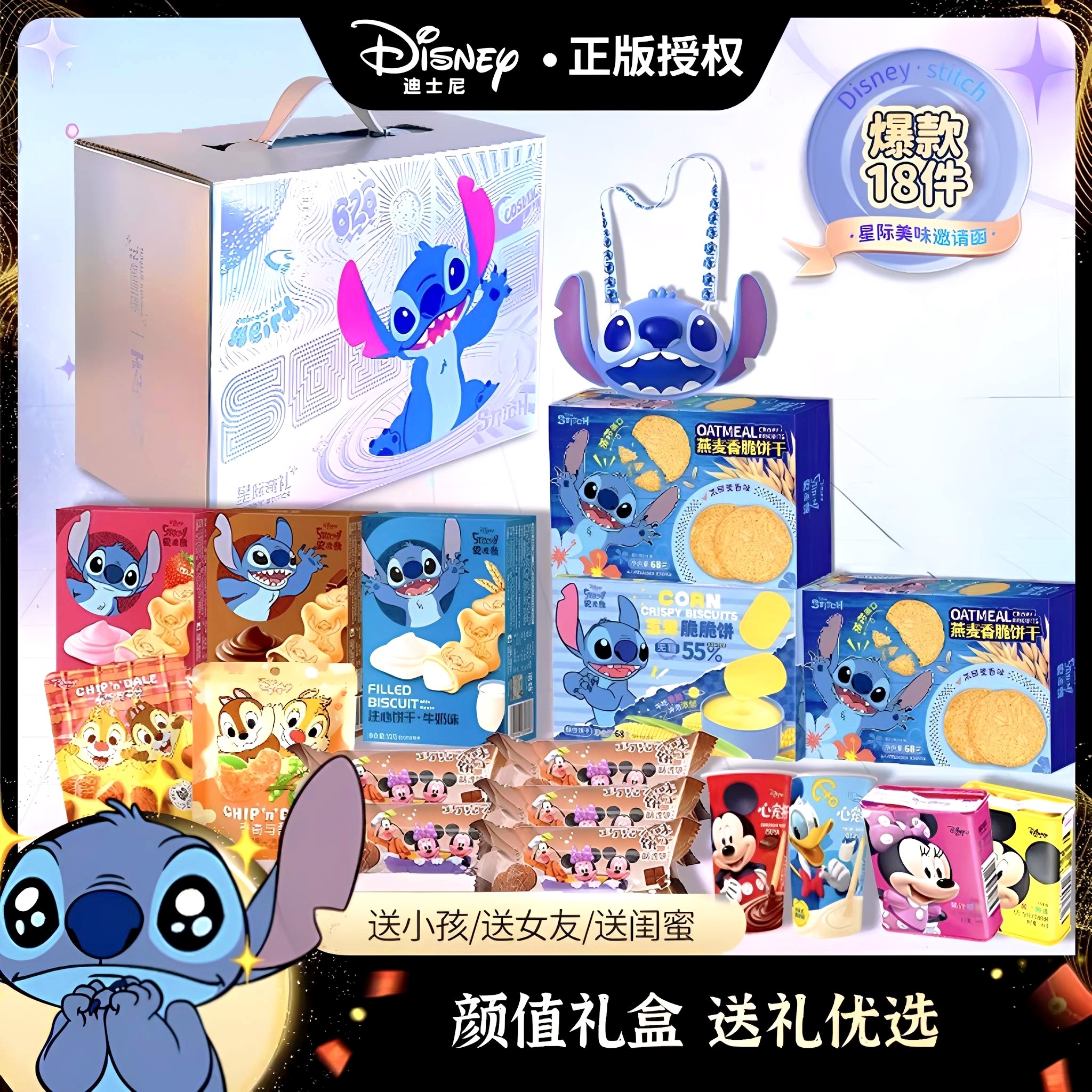 迪士尼零食礼盒史迪奇儿童礼物过年年货零食大礼包送孩子生日礼物