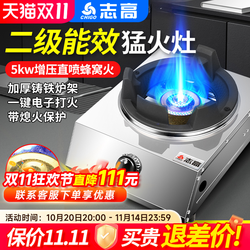 志高商用燃气灶低压猛火灶单灶液化气天然气节能煤气炉带熄火保护